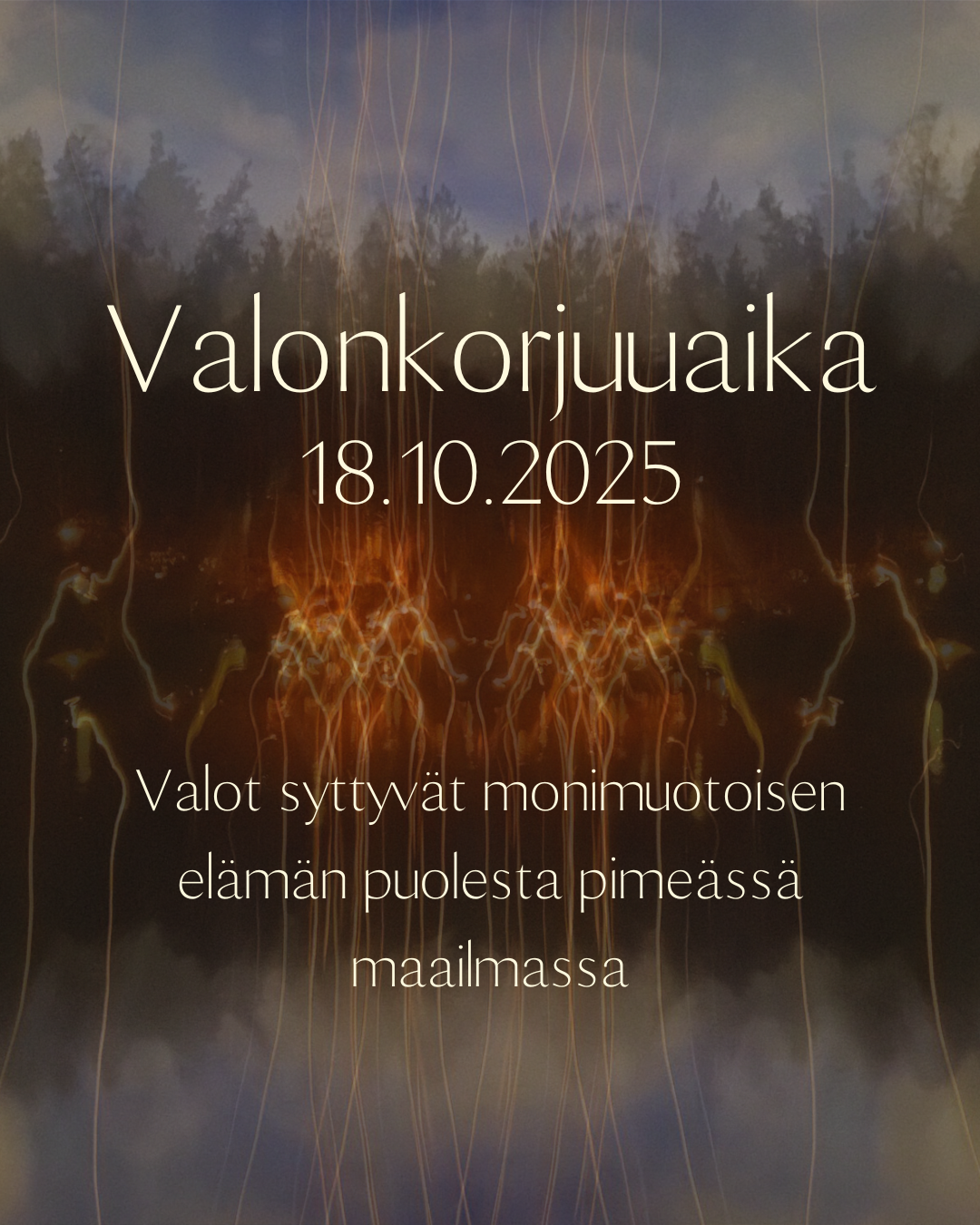 Tervetuloa yhteisölliseen Valonkorjuuaika-tapahtumaan! Ilmainen tapahtuma järjestetään turkulaisessa lähiluonnossa, Kärsämäen Pirunpesän alueella lauantaina 18.10.2025 klo 18.30-20.30.